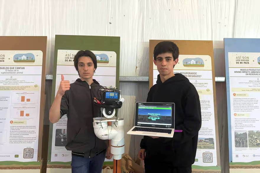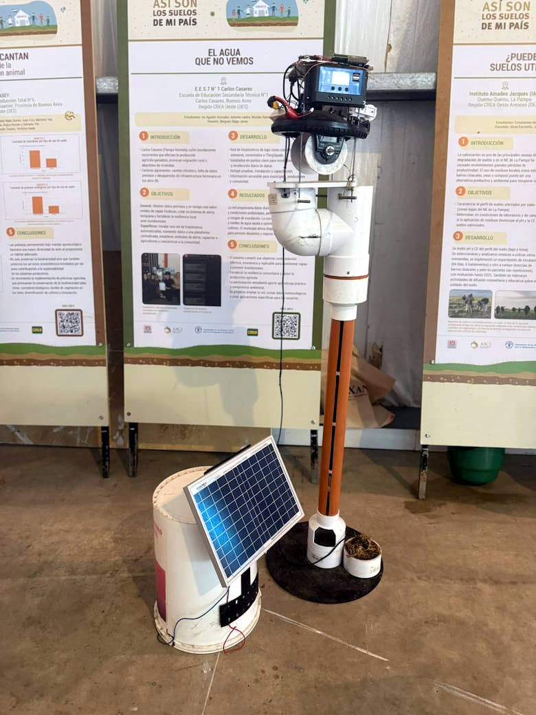 Lo que empezó en el club de robótica de la escuela, hace varios años, terminó convirtiéndose en un desarrollo tecnológico que hoy despierta el interés de productores, técnicos y empresas del agro. En el pasillo central del Congreso CREA en Tecnópolis, Nehemías Vecino, de 18 años, y Gustavo Martín, de 17, mostraban un prototipo armado con caños, cables y un pequeño panel solar. A cada rato se acercaba alguien a preguntarles qué era esa estructura y ellos respondían con entusiasmo, casi como si disfrutaran repetir una y otra vez, la explicación: “Es un freatímetro automatizado, mide el nivel de la napa freática en tiempo real y envía alertas por mensaje de texto o a través de una página web”. Sirve para tomar decisiones sobre los cultivos por sembrar como también para estar atentos a riegos de inundaciones.